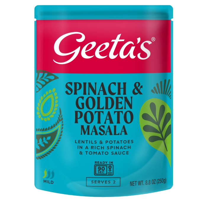 INGREDIENTS: Cooked Mung Beans, Cooked Split Red Lentils, Potatoes, Spinach, Tomato Paste, Biryani Paste (Rapeseed Oil, Spices, Water, Salt, Vinegar, Garlic Powder, Sugar, Onion Powder, Tomato Powder, Natural Flavoring), Curry Marinade (Sugar, Spices, Dried Glucose Syrup, Cornstarch, Coriander Powder, Garlic Powder, Onion Powder, Tomato Powder, Yeast Extract, Cumin Powder, Turmeric Powder, Fenugreek Powder, Salt, Cinnamon Powder, Black Pepper, Chili Powder, Star Anise Powder, Rapeseed Oil), Garlic Paste, Mustard Seeds, Sunflower Oil, Ginger Paste, Red Chili, Onion Powder, Yeast Extract Powder, Cumin Seeds, Black Caraway Seeds, Guar Gum.
